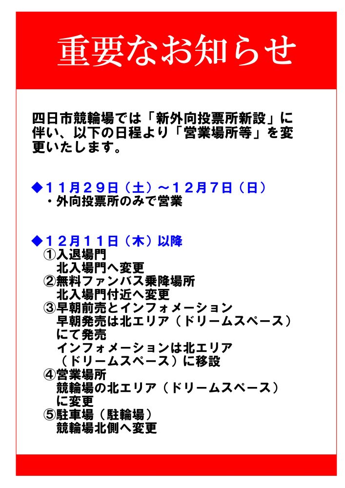 新外向投票所新設に伴う営業場所のお知らせ