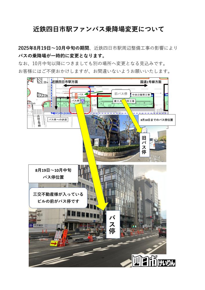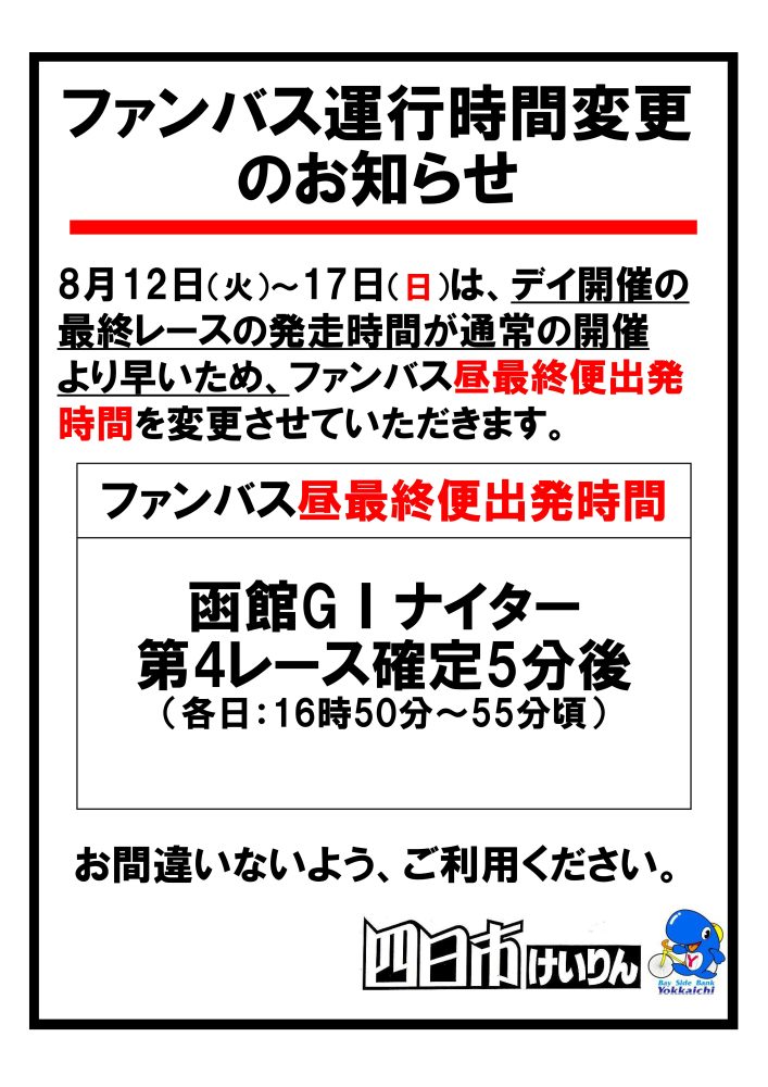 8月12日(火)~17日(日)のファンバス運行時間一部変更について